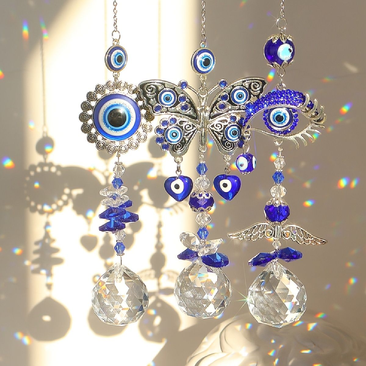 1pc Crystal Sun Catchers; Blue Butterfly Evil Eye Suncatcher Indoor Window With Prism Ball; Sunlight Rainbow Maker Good Luck Hanging Crystals Ornament
