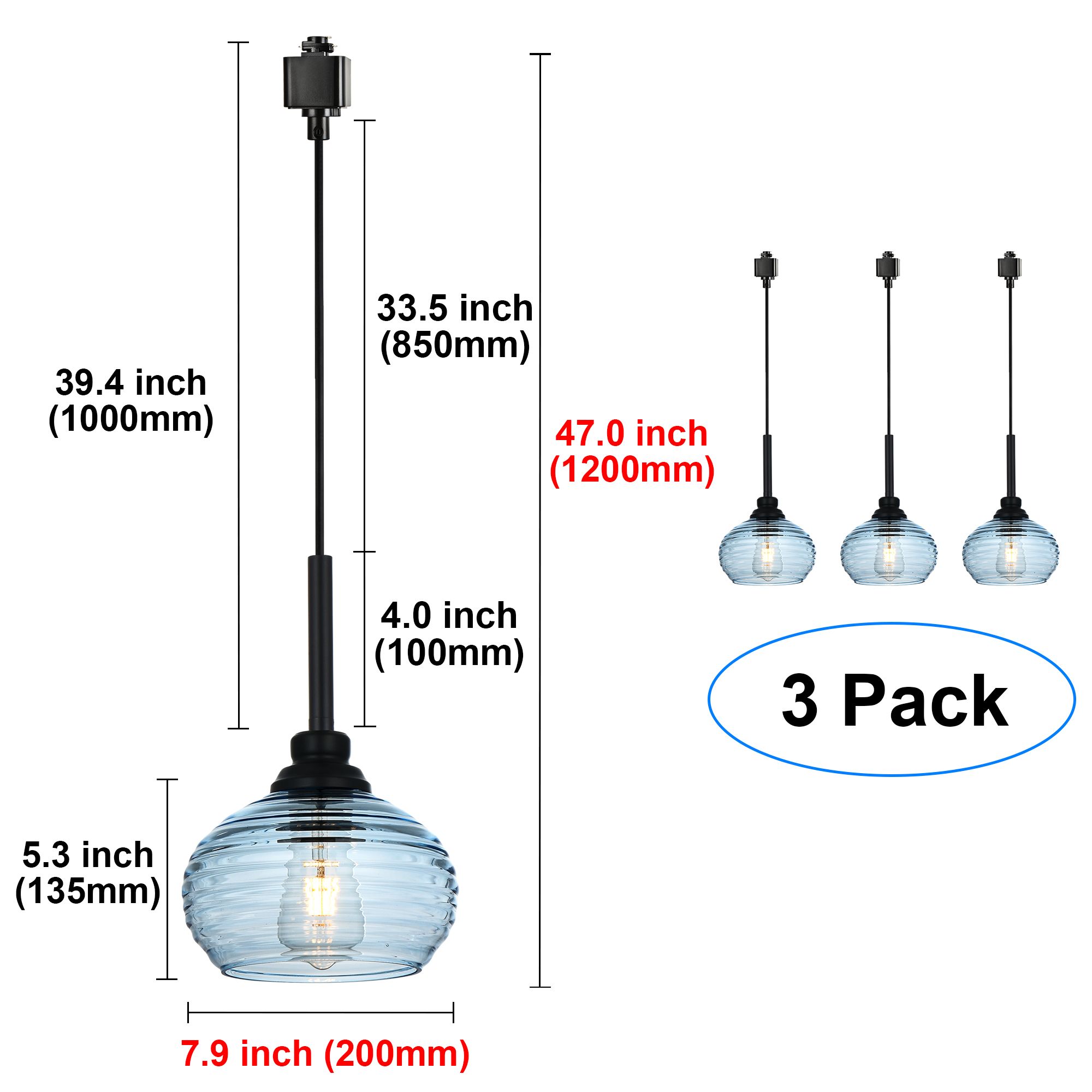 Stunning Glass Pendant light: Elevate your home decor with this black pendant lights, featuring hand blown water ripple texture on sleek blue glass. Achieve a chic and modern look of h track pendant light add both style and functionality to any space.
