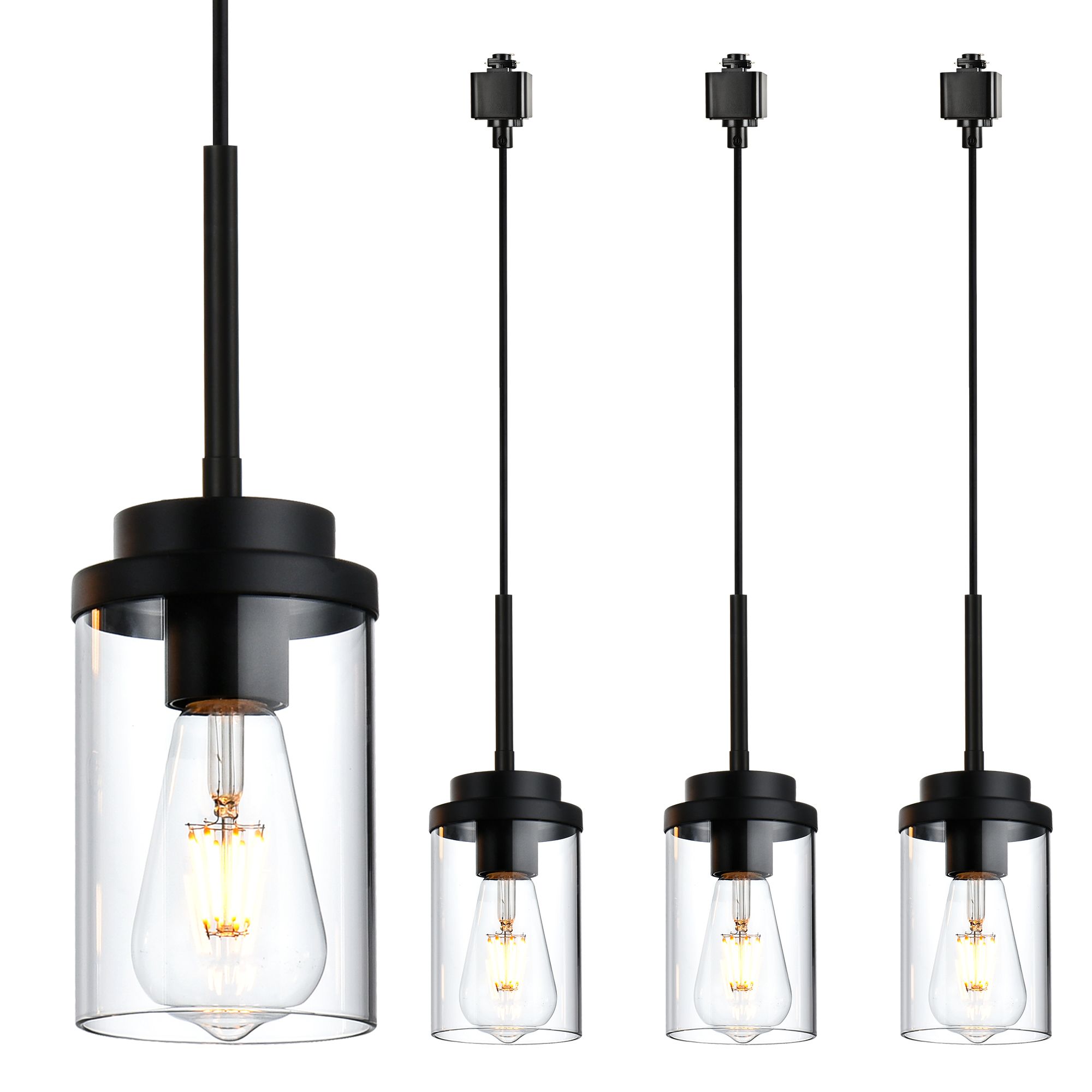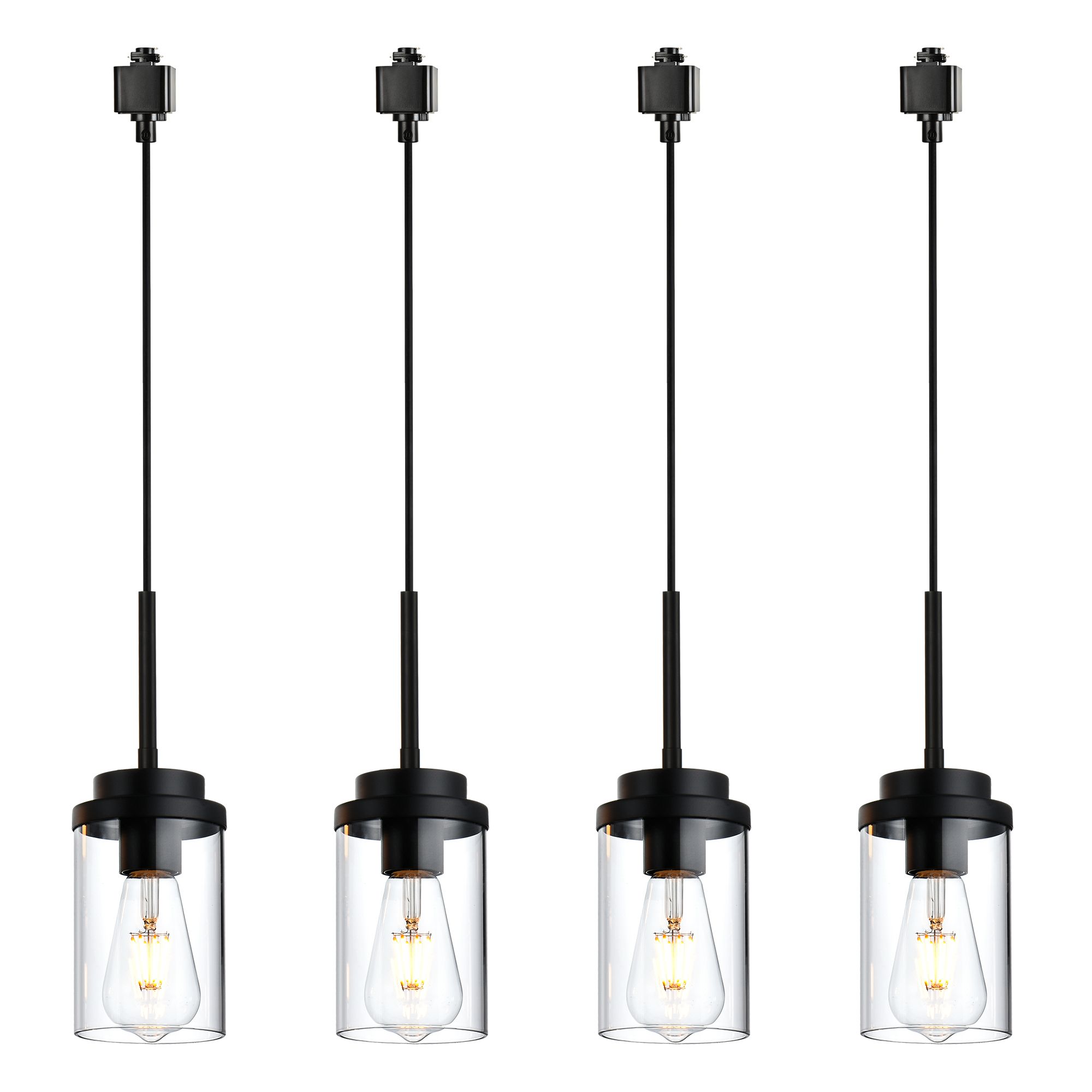 Home > 4 Pack H-Type Track Lighting Pendants Black Ceiling Track Hanging Light Fixtures with Clear Glass Shades, Compatible with H Type Track Lighting Rail