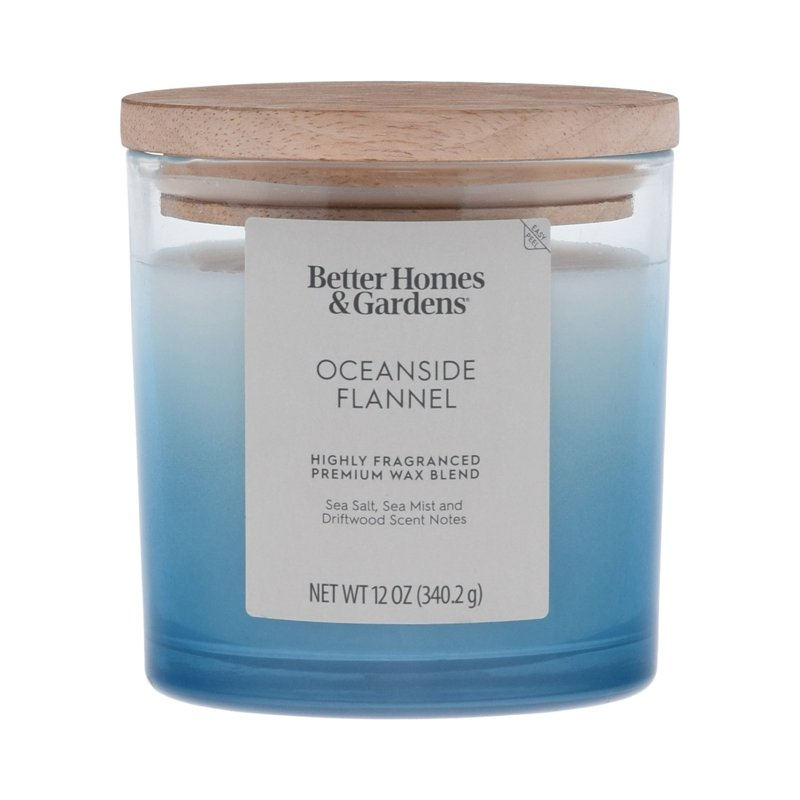 Oceanside Flannel Scented 2-Wick 12oz (340.2 g) Ombre Jar Candle - Emitting a warm, golden light, this candle fills your space with an indulgent fragrance. Notes of Sea Salt, Sea Mist, Driftwood creat