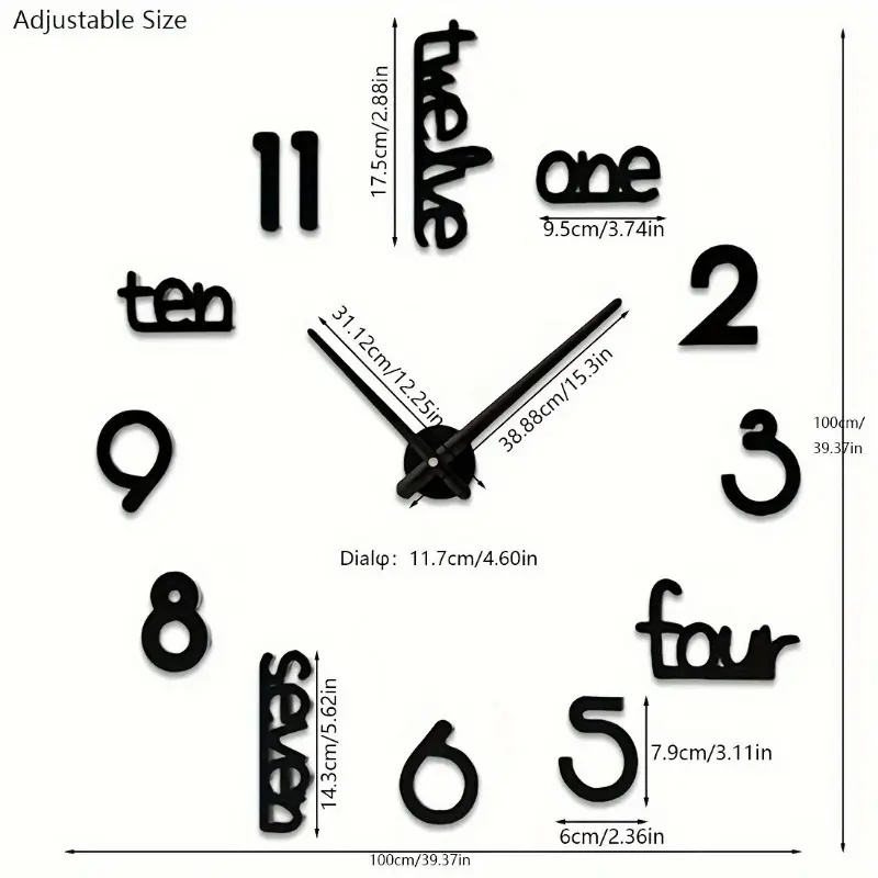 Giant Frameless Wall Clock – Modern Silent Jumbo Clock for Home & Office Decor Make a Bold Statement with This Sleek, Oversized Timepiece! This extra-large frameless wall clock combines minimalist elegance with silent quartz movement, perfect for contemporary living rooms, kitchens, bedrooms, and home offices. With its giant numerals and ultra-thin profile, it transforms any wall into a stylish focal point. ✔ Jumbo Size – XX-inch diameter (commands attention without being bulky)✔ Frameless Minimalist Design – Seamless blend with modern/Scandinavian decor✔ Silent Sweep Movement – No disruptive ticking (ideal for bedrooms/offices)✔ Clear Visibility – High-contrast numerals tell time at a glance✔ Versatile Placement – Perfect for living rooms, kitchens, offices, or lobbies✔ Easy Installation – Includes hanging kit & battery (AA battery included)