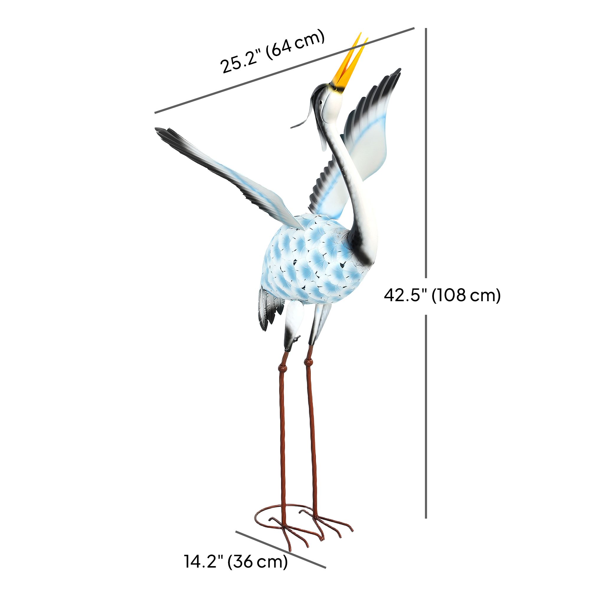 • Crane Statue Info: 25.2" W x 14.2" D x 42.5" H (64 x 36 x 108 cm); Easy to assemble without tools