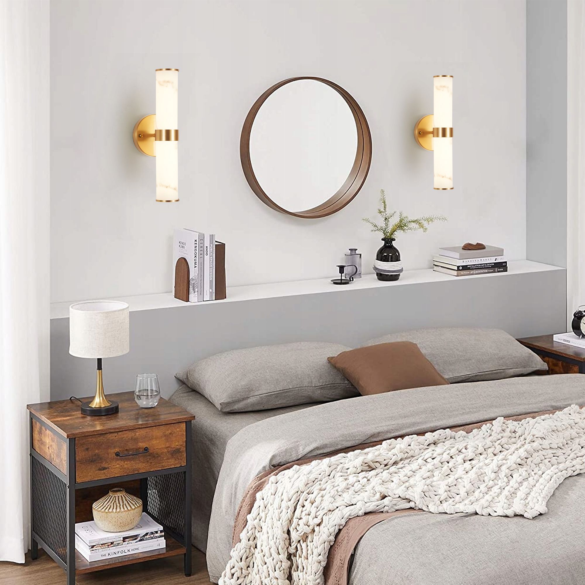 Golden and Elegant Resin Wall Sconce,Set of 2,Modern Vertical Light Fixture for IndoorDiscover the perfect blend of style and functionality with our Set of 2 Elegant Resin Wall Sconces. The feature a unique marble finish, mimicking the natural beauty of real stone with the durability and lightweight properties of high-quality resin. Accented with a touch of gold, these cylindrical light fixtures add a hint of luxury to any room. Ideal for enhancing the ambiance in your living room, bedroom, or hallway, they provide both effective illumination and a striking decorative touch. Simple to install and easy to maintain, these sconces are an effortless way to elevate your home decor while embracing eco-friendly lighting solutions.