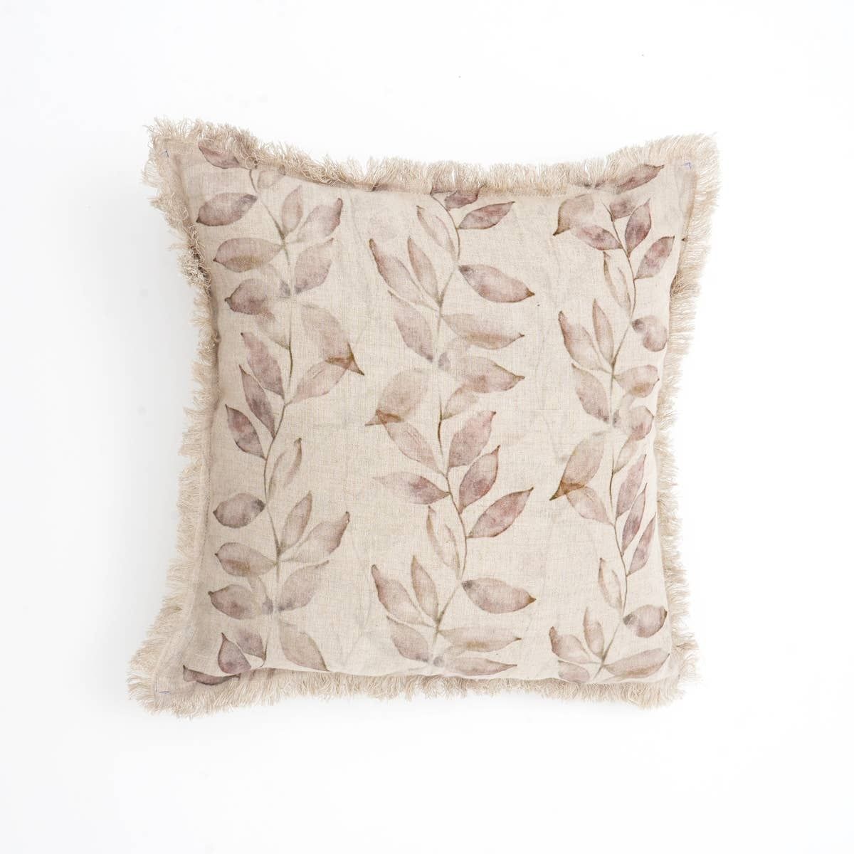 Linen Printed Cushion with Fringes (Brown) Linen Printed Cushion with Fringes (Brown) Linen Printed Cushion with Fringes (Brown)