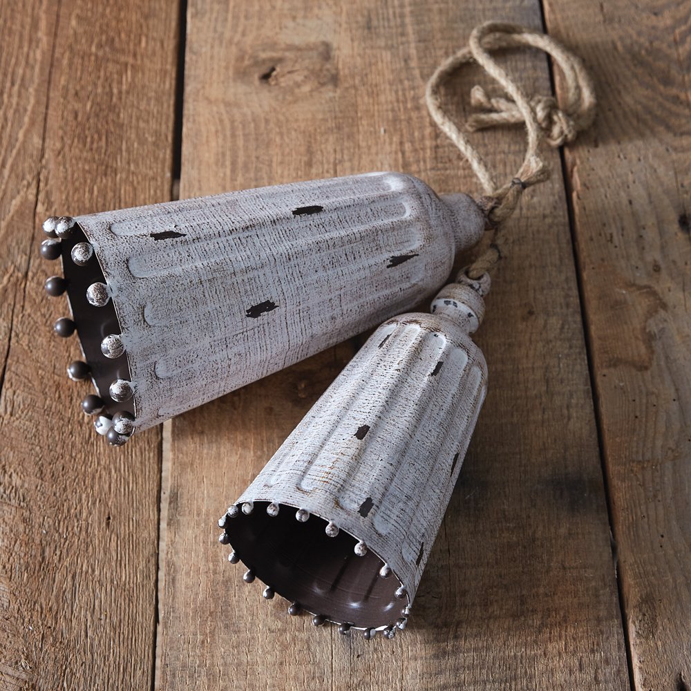 Set of Two Whitewashed Metal Bells Set of Two Whitewashed Metal Bells Set of Two Whitewashed Metal Bells