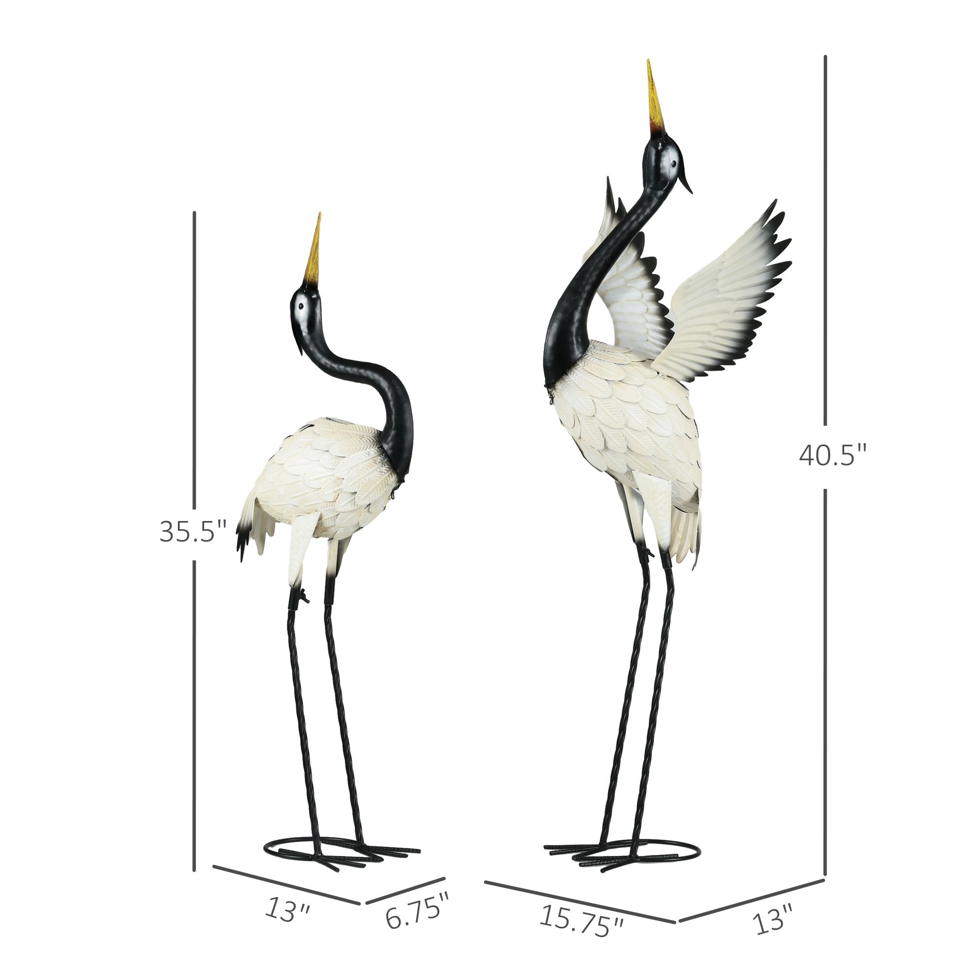 Garden lacking an accent? Looking for an eye-catching decorative piece to bring it all together? Let Outsunny's yard art sculptures bring life to your garden. This set features a large and a small heron with graceful poses, bright colors, and vivid details. Built to withstand outdoor elements, these steel lawn statues are protected with an e-coat and a powder coat. Their bases offer a structure less likely to fall over with a reinforcing circle and four U-shaped ground stakes.