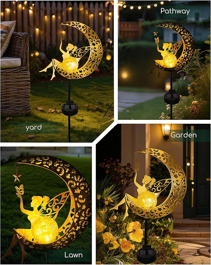 1.Beautiful fairy-on-moon design adds a magical, glowing accent to your garden