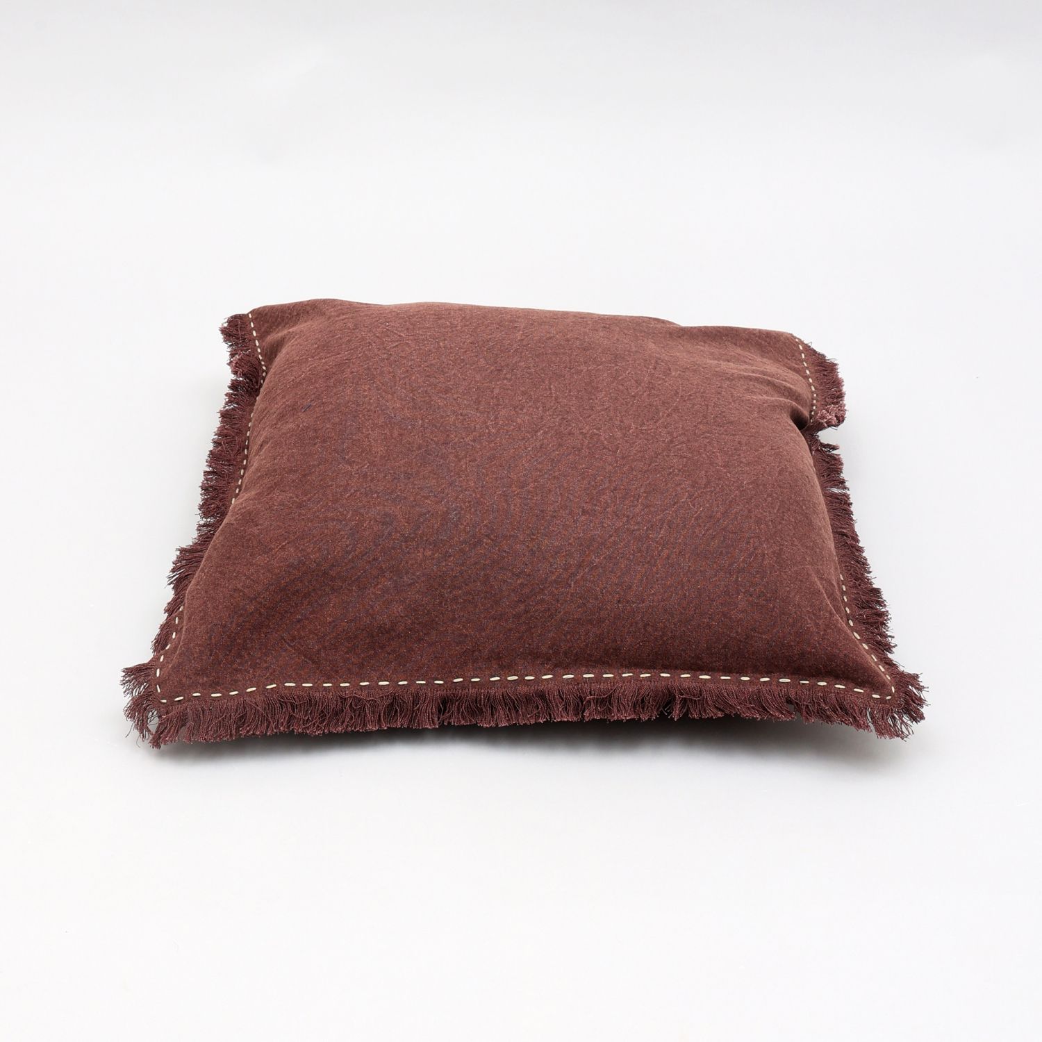 Home > Stonewashed Linen Throw Pillow with Handworked Edges & Fringe -22X22"