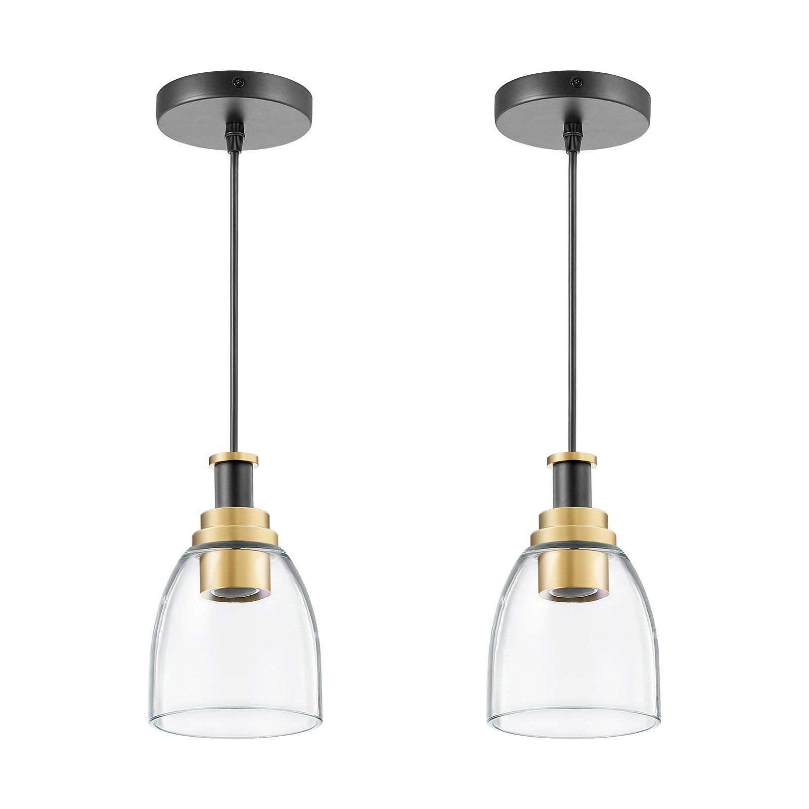 1.Versatile & Stylish: This glass pendant light features black and gold finishes with a clear glass shade, ideal for any style. Use them separately as bedside lights or together above your kitchen island or dining table.